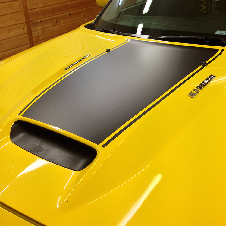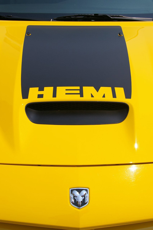 Därför blev det en ny dekal, med ss -stripe kant och 6.1 HEMI på valsningarna av huv-scoopet. Vad tror ni? Själv är jag rätt nöjd, iaf bättre än originalet