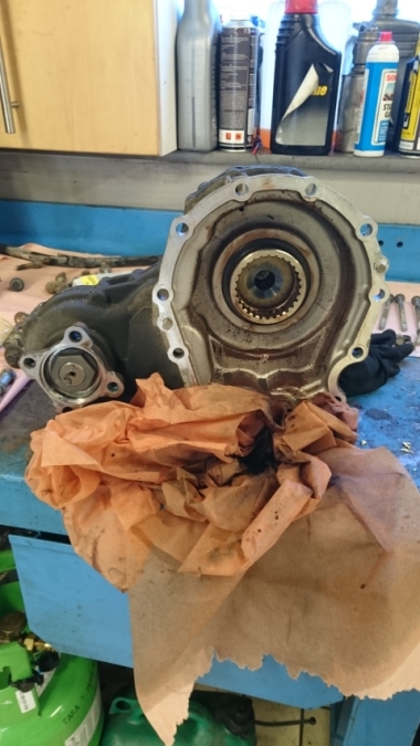 Hur som helst så blev det till att uppsöka den auktoriserade verkstaden igen ( där jag numera har klippkort :lol: ) och jag kunde ganska snabbt konstatera två saker, dels att detta strul kommer att ta tid att fixa och dels kommer strulet med Chryslern att pressa tillbaka min ekonomi till tiden när skräcködlorna härjade som värst! :P Hur som helst det fanns egentligen bara en sak att göra och det var att riva ner hela jävla växellådan och fördelarlådan och sen plocka ner alla drev och kuggar och axlar,planetväxlen, väck med oljan och packningar...etc..
