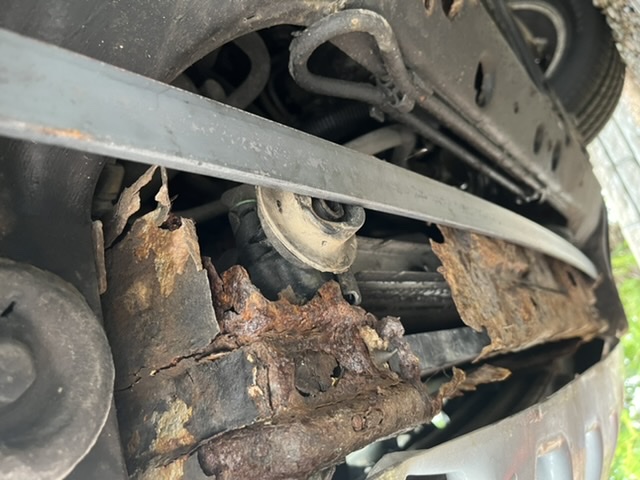 Jag löste det hela med ett plattjärn i storleken 30x6 mm som jag kapade med vinkelslip på längden. Det behövs ingen svetsning, utan hålen i karosen kan användas som fästen, se videon.
