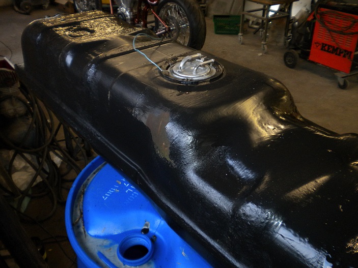 Här kommer man inte åt när tanken är på så det blev ett race med penselen här med.