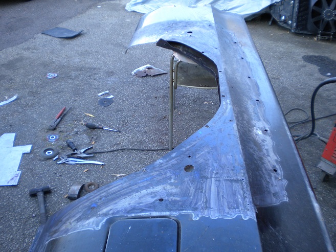 började med att vallsa ut en 2 mm plåt så den följde kaross linjen.