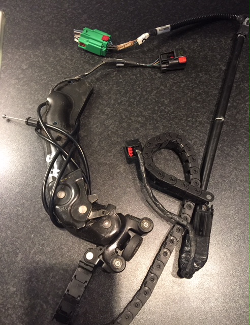 Det här är kablarna sensorn satt på. Det är något lås en vajer går till, vad är det? Känns som det inte är kablarna som går till sensorn som sitter på balken fram. Är det samma sensor till dörrstolparna?