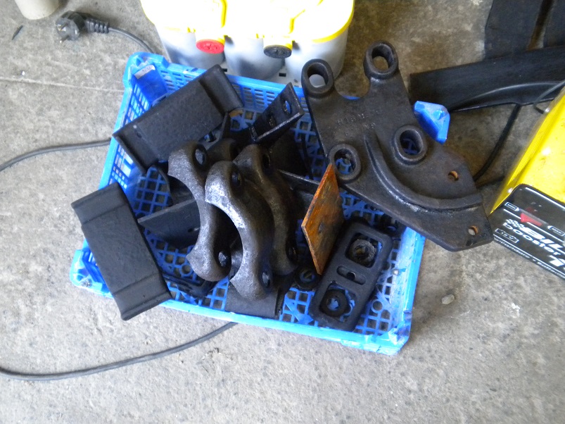 Dom har legat i saltsyra i 2 dyngn och sedan legat och torkat och även fått en rödaktig rost yta innan jag la på rostomvandlaren . Fy fan vad det biter i då !! Ytan blir som ett 1200 vattenslip papper så det är perfekt och lägga topplack på. Så här såg dom ut från början