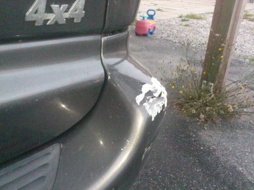 Apropå att göra grejer. Frugan förstörde lite plast på kofångaren bak.