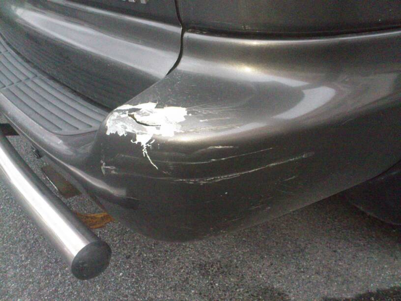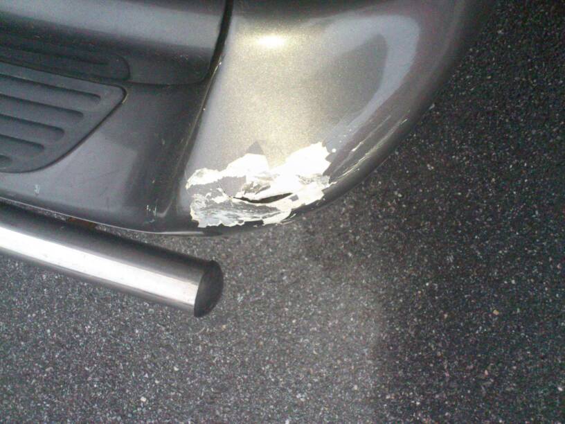 Plasten som har spruckit upp och gjort hål, finns ju kvar på stötfångaren.
