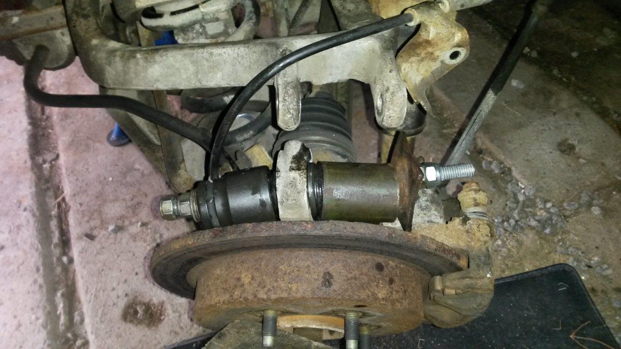 Den bussning som sitter längst upp ute vid bromsskivan bak är helt kass på ena sidan på en av mina AWD:er, man kan bryta hjulet med handkraft i sidled.