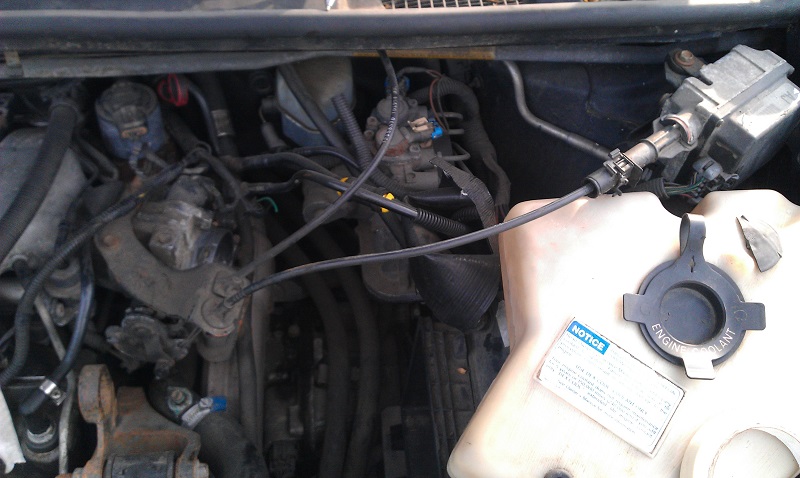 Den är kopplad till luftspjället, det kommer en vajer från gaspedalen och en från farthållaren.
