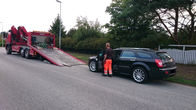 Jag fick så snällt bli upphämtad av bärgningstjänsten som givetvis inte tog kreditkort. Har ni gått om slantar i era plånböcker så kan ni ju alltid prova att åka bärgningstjänst till helg taxa, så slipper den tjocka börsen tynga ner så mycket i byxan, om jag säger så... :lol: