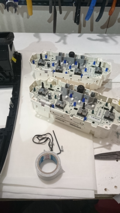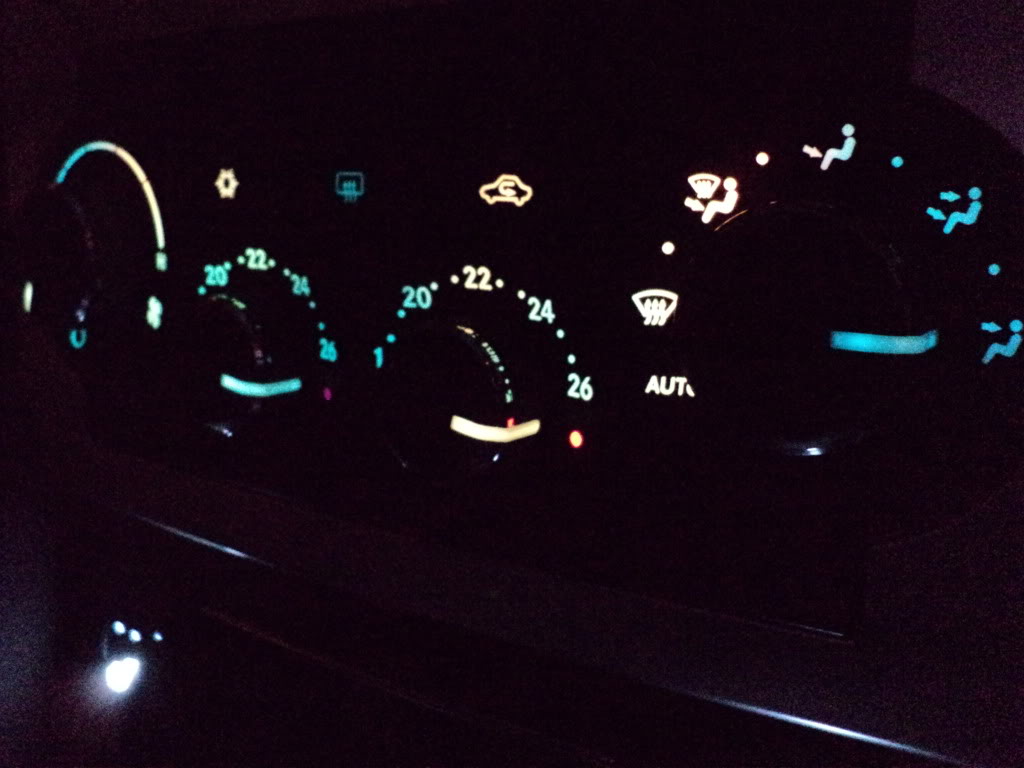 (närmare bestämt + 14 c på höger luftuttag) och 21 c på det vänstra! Jag skickade tillbaka det begagnade boxen och hoppade raskt på plan C. Ett något omständligare jobb men med beprövad gott resultat. Jag monterade in det gamla kretskortet igen( de med bränd krets till lamporna och testade att köra värme/ kyla reglagen och det gav rätt värden vilket var positivt. Dock hade jag ingen belysning varken till klockan eller klimatanläggningen. Men plan C baserades på att inte använda kretskortets lampor utan fixa ditt utomstående lampor!