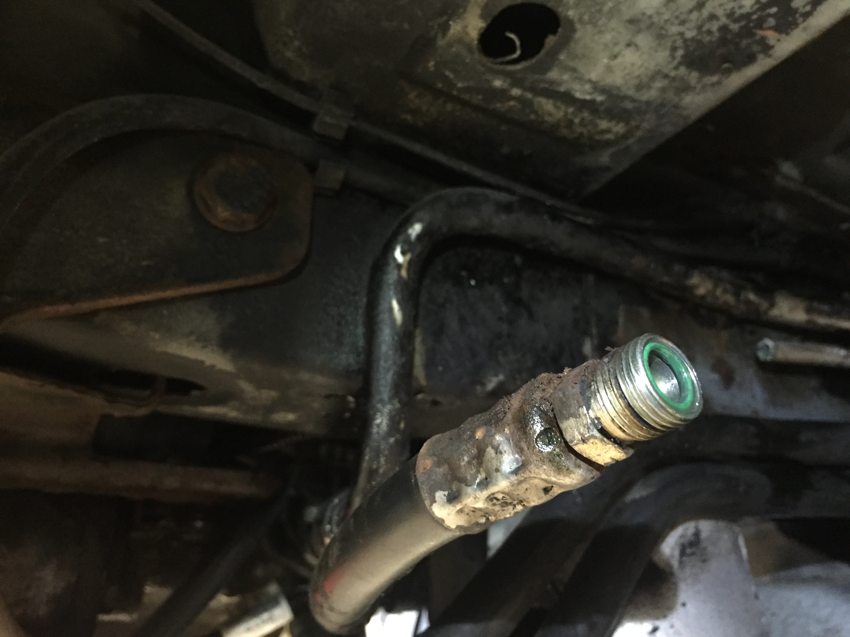 Systemet måste hålla ett visst tryck annars startar inte kompressorn. Nu har du sett att det läcker i lågtrycksporten så det är väl primär misstänkt så man får börja med att byta den och sedan undersöka om det finns fler läckor. Systemet måste vacuumsugas innan man fyller på ny gas.