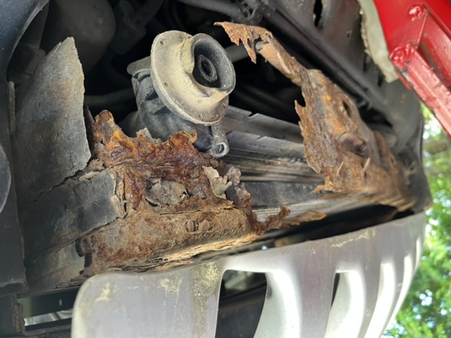 Nu är balken under kylaren bortagen på grund av att den var upprostad och skall svetsa dit en ny, kanske det då går att ta ut den underifrån..